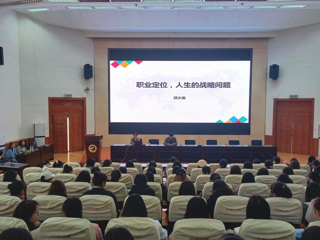 11月16日下午,网投十大信誉可靠平台特邀BCC国际生涯教练,高考志愿高级规划师(AUP),高校生涯课程导师,省级创业导师,国家一级职业指导师顾水英老师在2号报告厅作了题为“职业定位,人生的战略问题”的职业生涯规划辅导报告,外语学院领导班子部分成员、辅导员、班主任及2018、2019级本科生现场聆听此次报告。