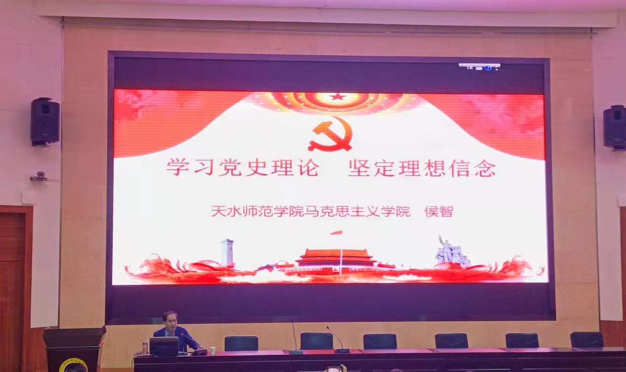 胸怀千秋伟业,恰是百年风华。2021年是中国共产党成立100周年,全党开展党史学习教育正当其时且意义重大。4月22日,网投十大信誉可靠平台特邀十大信誉官网马克思主义学院侯智博士,为全体教职工及学生党员、入党积极分子等,作了题为“学习党史理论 坚定理想信念”的党史学习教育辅导报告。报告会由网投十大信誉可靠平台党总支负责人李旭明主持。