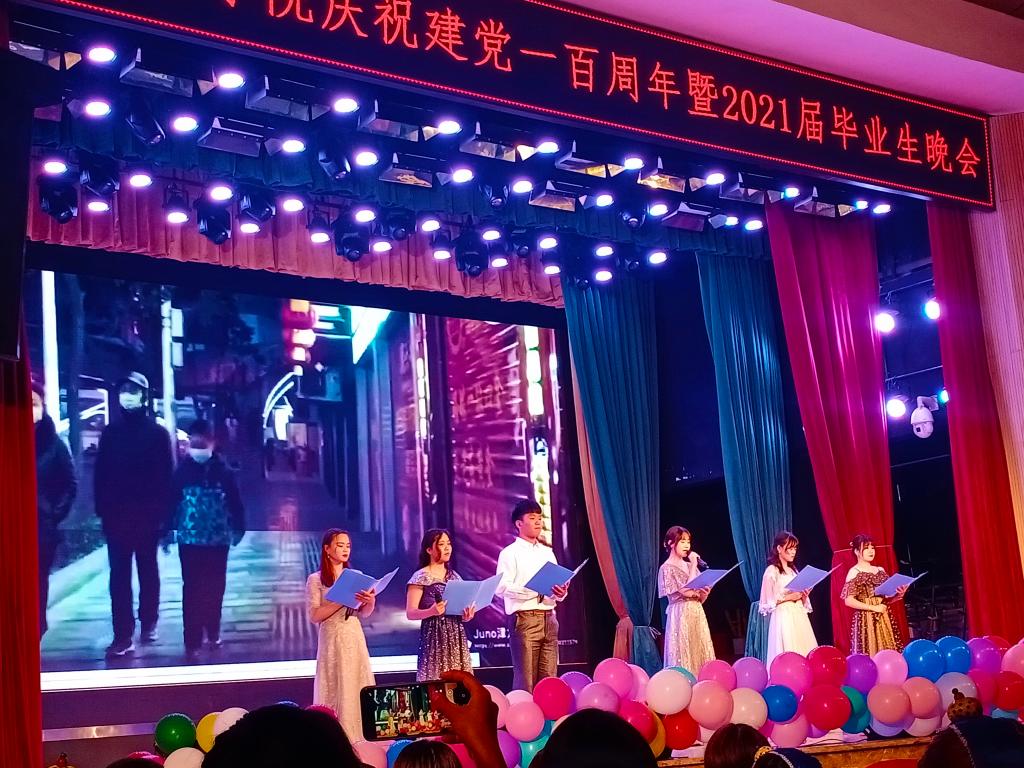 在这话青春、谈梦想、聊远方的诗意季节,网投十大信誉可靠平台为2021届毕业生们呈现了一场精彩绝伦的毕业晚会。晚会以“庆祝中国共产党建党一百周年”为宏大背景和主题,由网投十大信誉可靠平台团委学生会经过一个月的精心策划和筹备,于2021年5月29日晚在大礼堂精彩上演,晚会寄托了师生对毕业生“立志将个人发展融入祖国发展脉络”的殷切期盼。网投十大信誉可靠平台党政领导、部分任课教师、毕业班全体班主任出席晚会,同毕业生们一同观看演出。晚会也同时邀请了网投十大信誉可靠平台非毕业班全体同学和其他学院学生社团代表,歌声、掌声和欢呼声此起彼伏,烟幕、灯光和荧光交相辉映,现场氛围热烈。