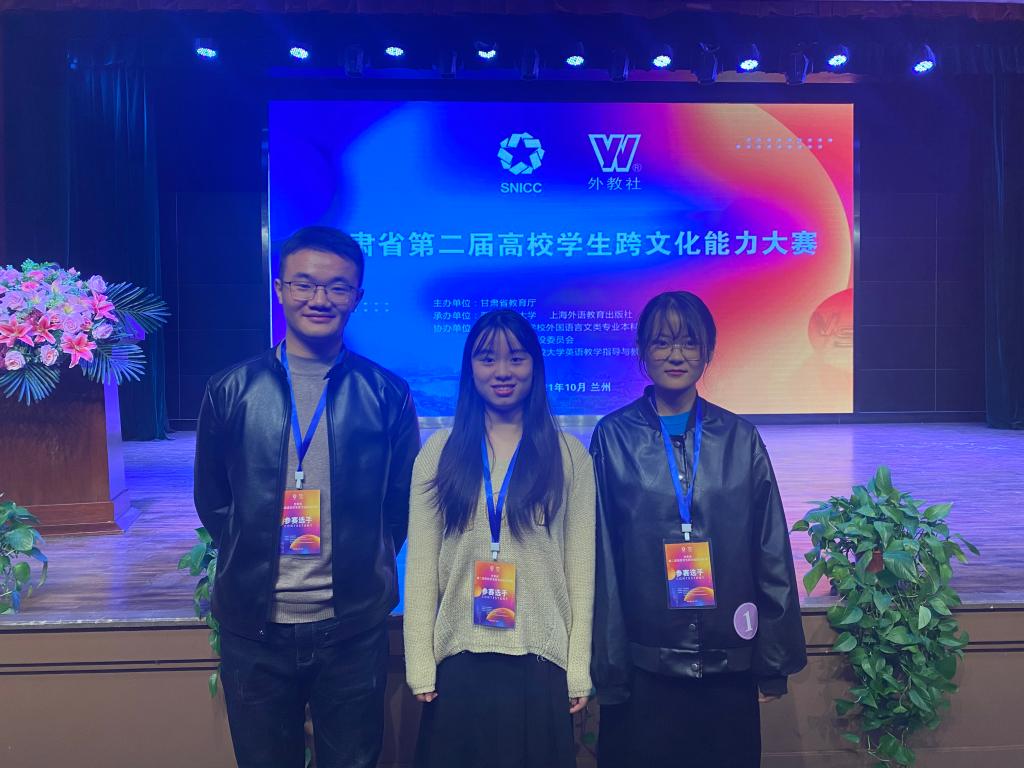 10月16日,甘肃省第二届高校学生跨文化能力大赛在西北师范大学举行,来自省内的21支高等院校代表队参加了此次比赛。由十大信誉官网2019级英语专业3班范永兰、2020级小学教育专业曾雨欣和2019级机械电子工程专业谭博文组成的天水师范学院代表队经过刻苦准备,以扎实的专业功底,迅速的思辨能力,出色发挥,最终获得大赛一等奖的好成绩。