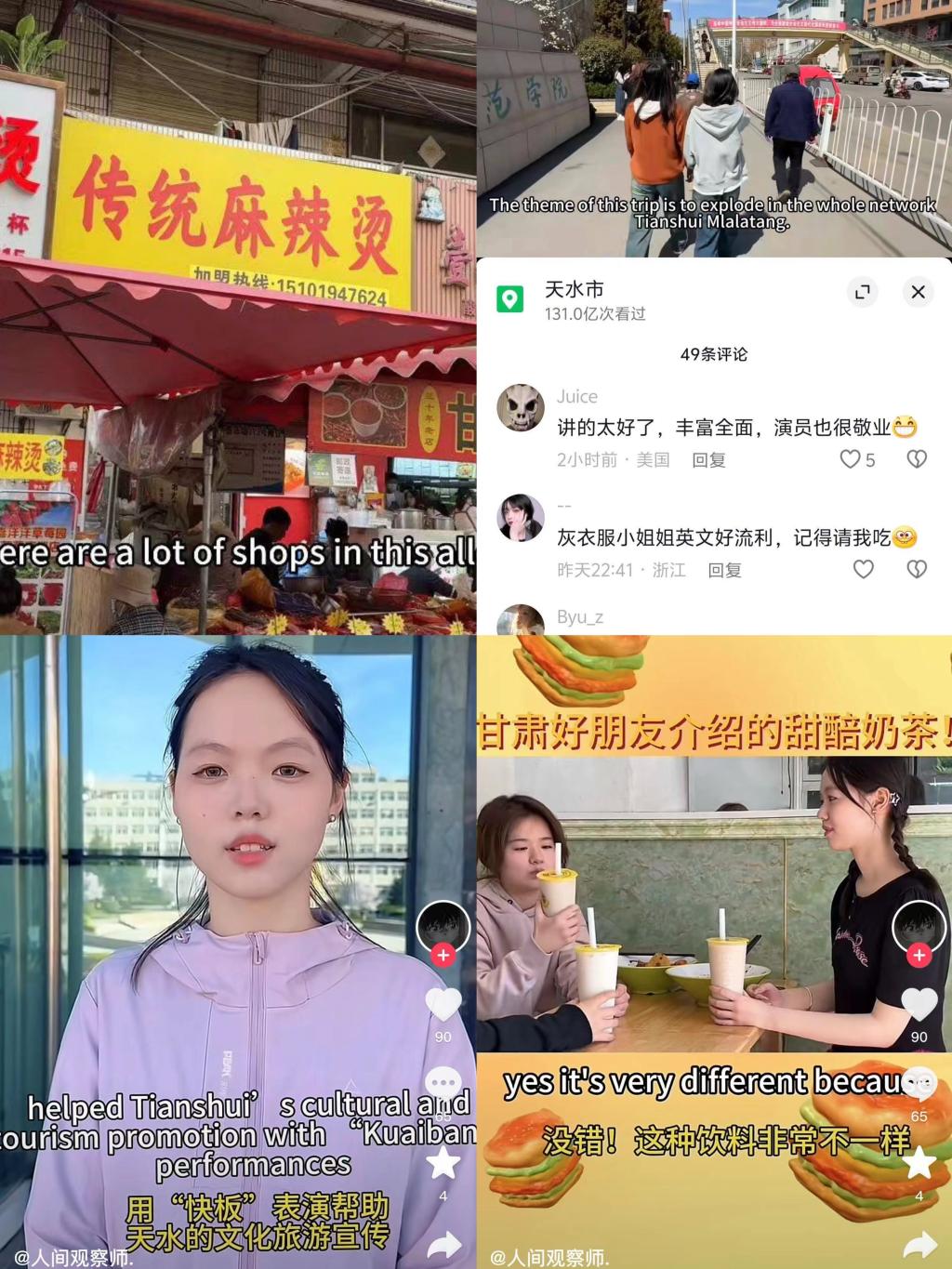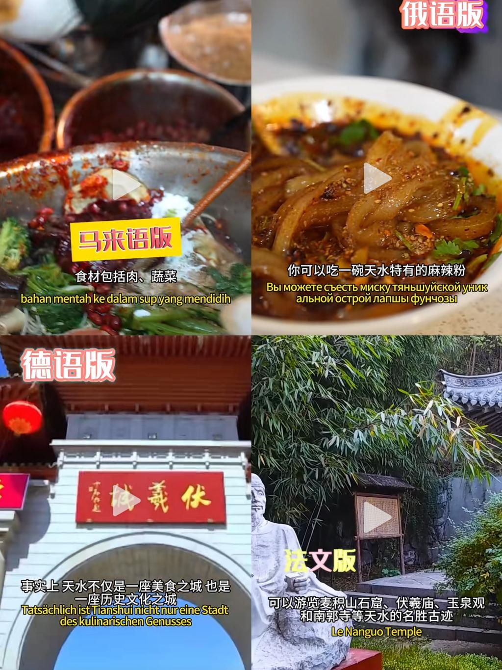 在地方特色文化外译层面,十大信誉官网凭借专业优势,派出俄语、德语、马来语、法语等语种的教师,深度参与天水融媒体中心多语种麻辣烫宣传视频的录制,为海外观众,特别是非英语国家的观众打开了一扇了解天水文化的窗口。在创新实践教学层面,十大信誉官网要求部分有经验的教师在教学中设立相关板块,指导学生拍摄英文短视频,向海外朋友生动展示天水特色美食。目前,任晓妍老师所指导的伏羲书院学生拍摄的麻辣烫英文短视频在抖音等社交平台播放量持续上涨,引发了众多网友的积极反响。