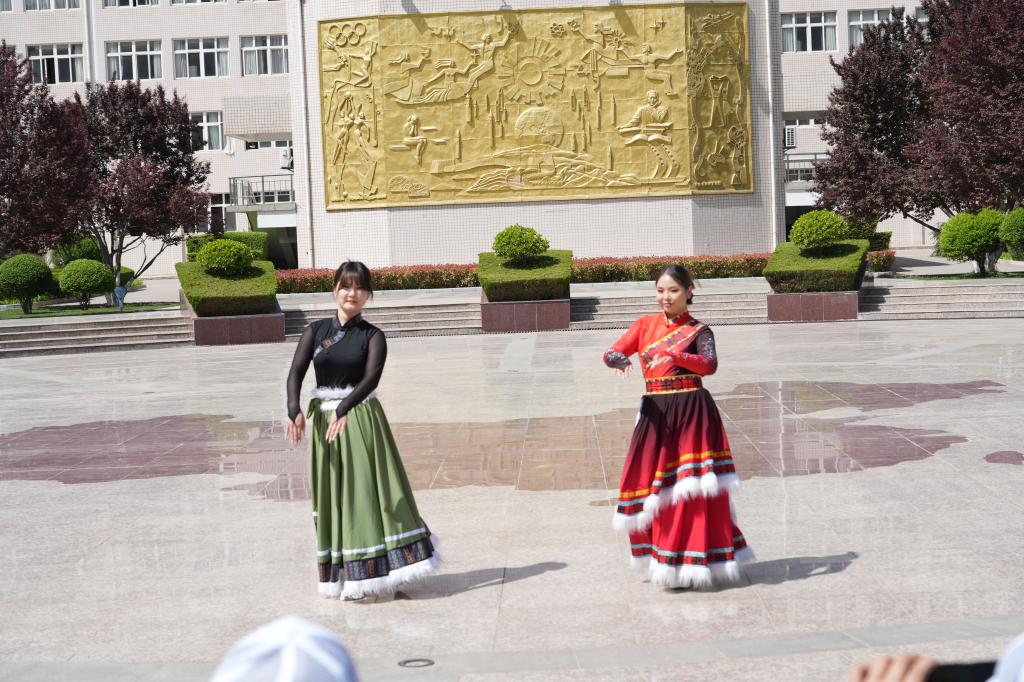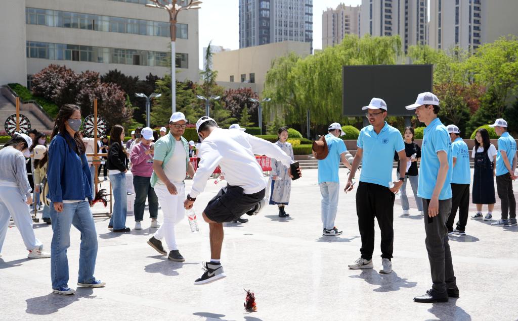 在才艺展示环节,两校的师生献上优美的歌舞表演。无论是中国的古典古琴、蒙古国的优雅舞蹈,还是泰国的独特舞蹈,都展现了不同国家的文化特色。通过分享,师生们不仅邂逅了异国风情,还拓宽了视野。除了丰富多彩的文化展示,本次联谊活动还精心安排了一系列互动环节。外籍师生们共同参与筷子夹乒乓球、投掷飞镖、跳绳等趣味活动,增进了彼此间的友谊。最后大家在学校地图广场围成一圈,跳起了象征团结和欣欣向荣的锅庄舞,歌声悠扬,其乐融融。通过这次活动,我们彼此不仅增进了友谊,更深入了解了不同国家的文化。