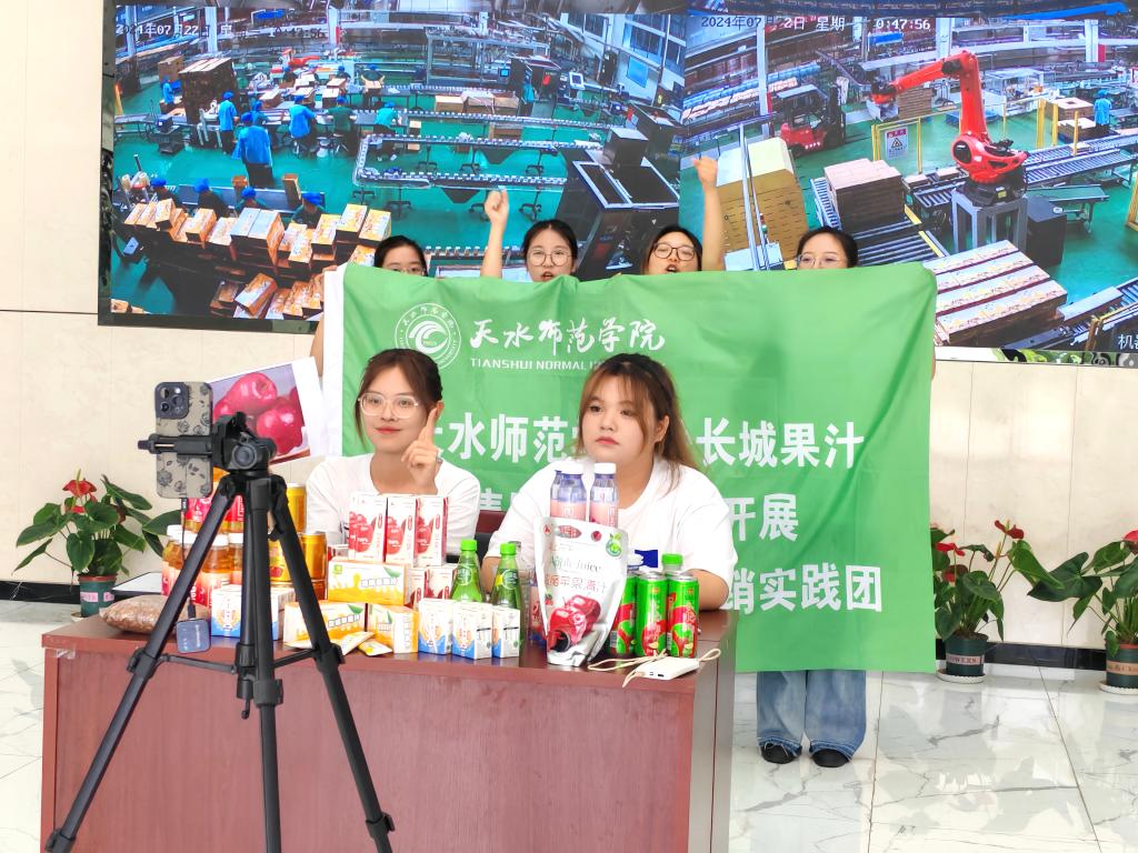 7月18日,网投十大信誉可靠平台11名青年学子以“助力乡村振兴,共谱发展新篇”为主题,联合天水长城果汁集团,开展校企合作,以直播的形式宣传和销售天水特产花牛苹果汁,让更多的人品尝花牛苹果的味道,书写文化和乡村发展与数字化线上营销新篇章。