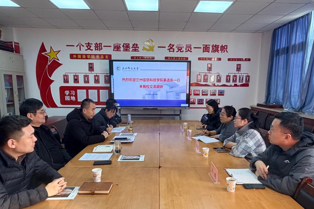 2025年12月19日上午,兰州信息科技学院英语系一行到访网投十大信誉可靠平台,围绕外语类专业建设与人才培养工作开展交流座谈。来访人员包括兰州信息科技学院商学院副院长韩欣圻、英语系系主任王鹏、副系主任张玲娟以及骨干教师胡小红。